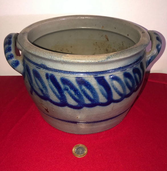 • Pote de grês original da alemã, da região de Westerwald feito de cerâmica do tipo grês com esmalte de sal pintado à mão com dimensões de 25 cm x 20 cm.