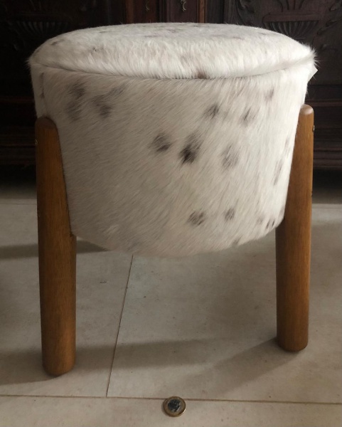 • Puff Barril medio feito de couro legítimo com pelo bovino com pés em madeira.