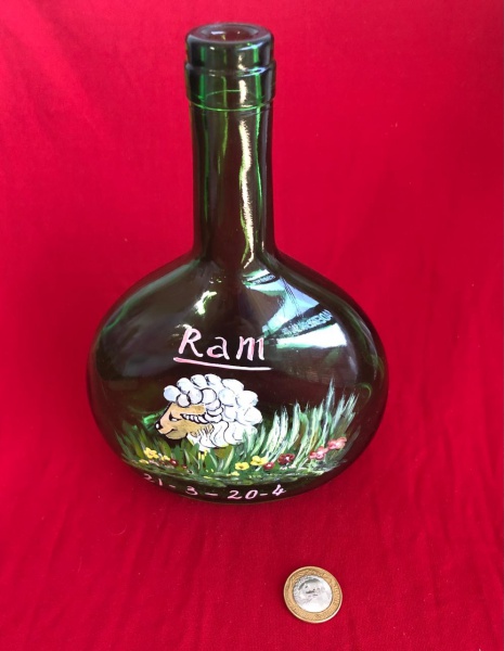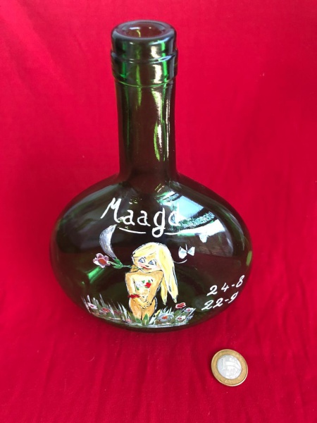 • Garrafa de vidro Bocksbeutel  vintage pintada a mão  e assinada pelo artista S. Seurynck .