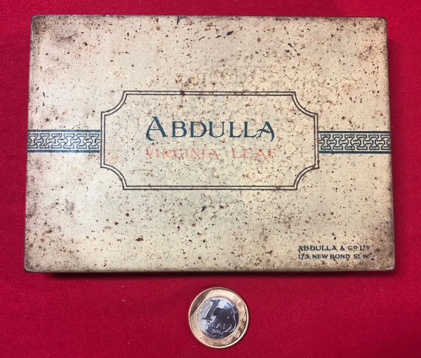• Lata antiga de cigarros da marca Abdulla, especificamente da linha "Virginia Leaf" produzido em Londres entre as décadas de 1920 e 1950.