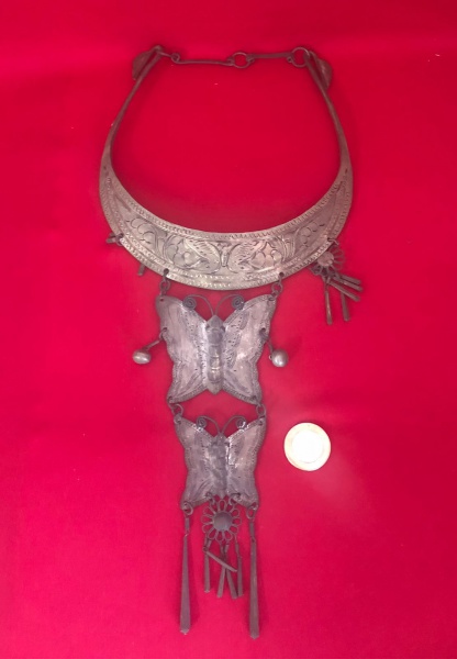 • Colar cerimonial tribal do tipo torque tradicional da cultura Hmong (Miao) povo do  Sudeste Asiático e Sul da China feito de prata miao fabricado entre as décadas de 1960 e 1980.