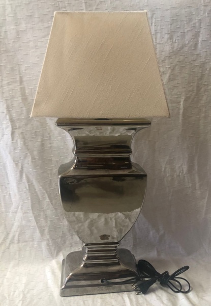 • Abajur da marca Henk Blom Decoration no estilo neoclássico produzido em cerâmica de alta qualidade banhado a cromo polido com cúpula em tecido  na Holanda.