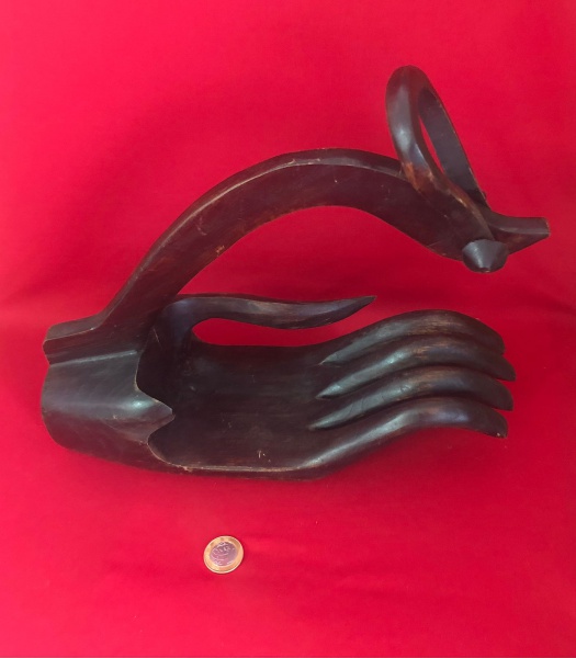 • Suporte e Vertedor de Vinho Vintage Esculpido à Mão em Madeira Teca.