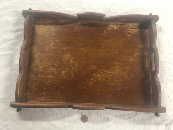 • Bandeja de madeira no estilo rústico popular entre as décadas de 1950 e 1970 .
