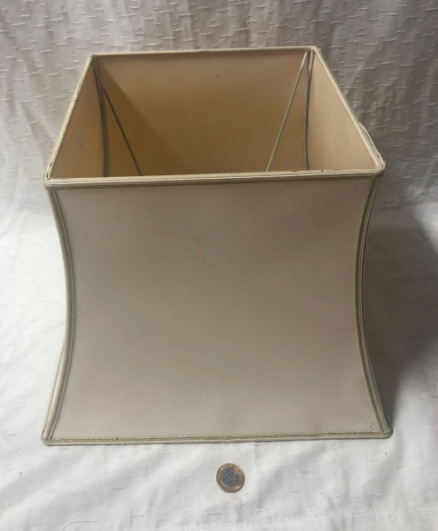 • Cúpula de abajur em um estilo clássico conhecido como sino quadrado feito de  seda  sintética .