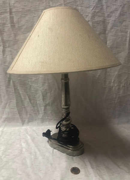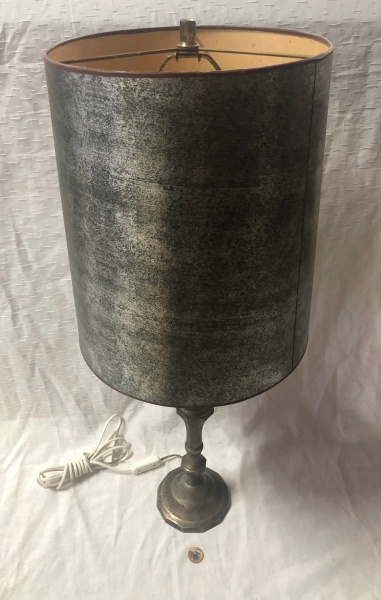 • Abajur de mesa estilo Europeu com base feita de estanho e cúpula em papel canson na cor metalizada das décadas de 1940 a 1960 .