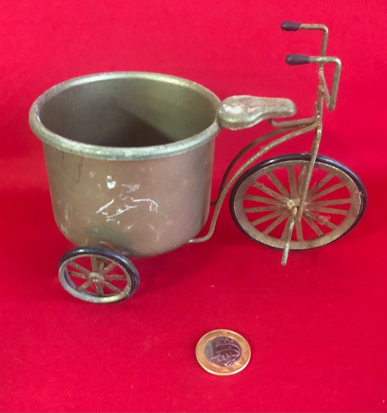 • Vaso decorativo vintage em formato de triciclo feito em latão populares na décadas de 1970 e 1980 .