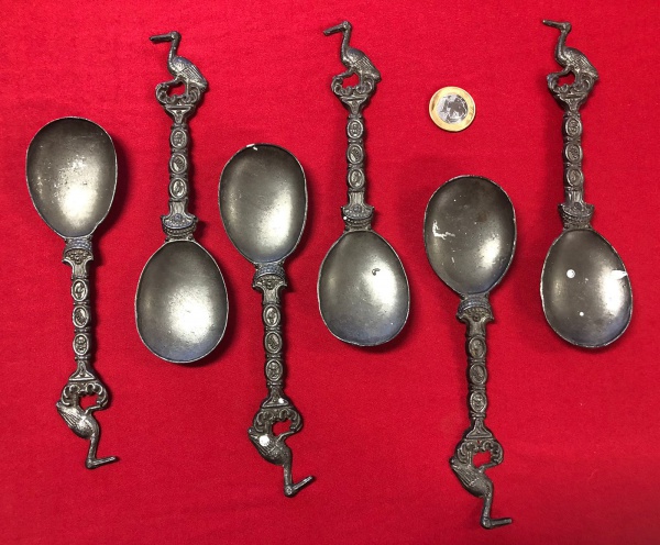 • Jogo de 6 Colher de colecionador holandesa antiga feita de estanho  das décadas de 1960 e 1980 .