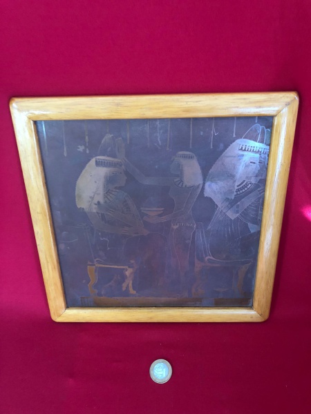 • Reprodução artística decorativa inspirada na arte da Mesopotâmia antiga feita de folha de cobre fina trabalhada em relevo  das décadas de 1960 e 1980 .