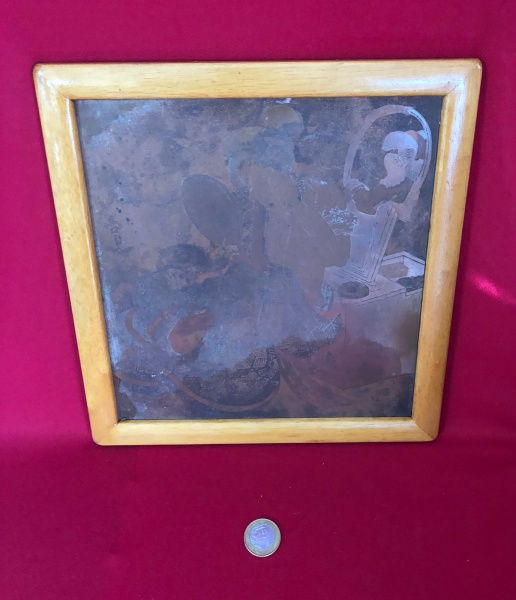 • Reprodução artística decorativa inspirada na arte chinesa antiga feita de folha de cobre fina trabalhada em relevo  das décadas de 1960 e 1980 .