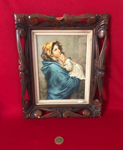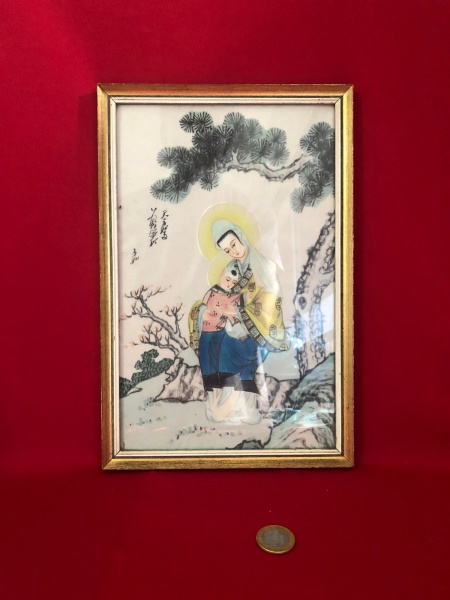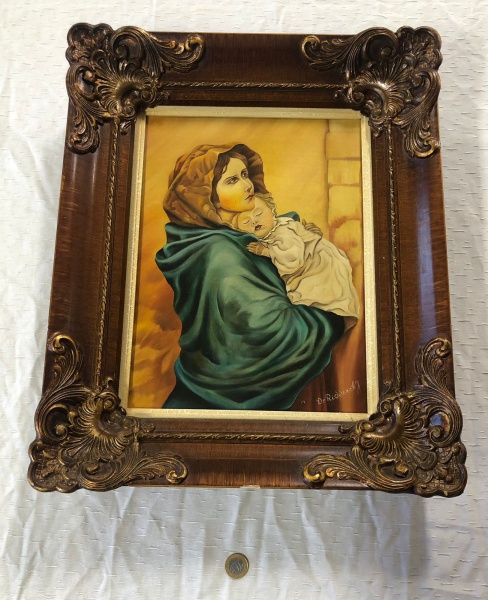 • Reprodução a óleo da obra "Madonnina" feita pelo Artista europeu De Ridder AJ.   meados do século XX .
