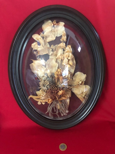 • Quadro decorativo de flores desidratadas com vidro bombê das décadas de 1970 e 1980