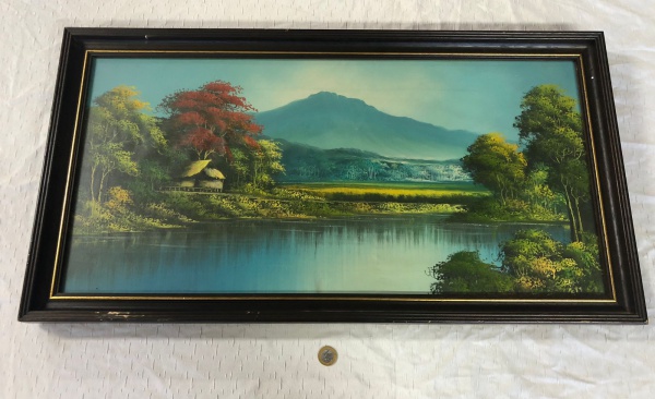 • Pintura de paisagem clássica feita com técnica a óleo com tema de paisagem  87cm X 46cm  com moldura .