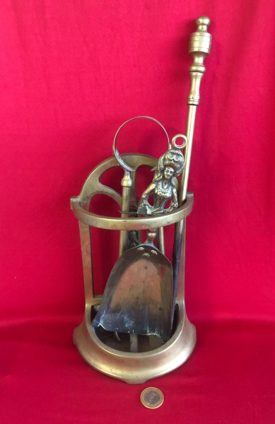 • Kit de ferramentas de lareira vintage  feito de latão .