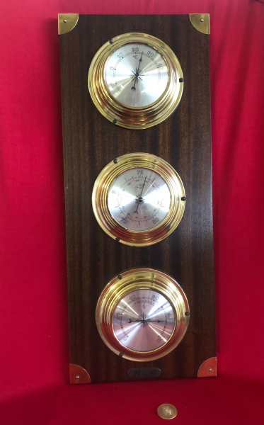 • Estação meteorológica analógica completa da marca NACEM  feito em madeira e latão das décadas de 1970 e 1980.