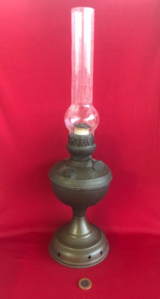 • Lampião de mesa a querosene feito de latão  com cúpula de vidro produzido entre 1900 a 1950. Faixa de preço: R$200 a R$400