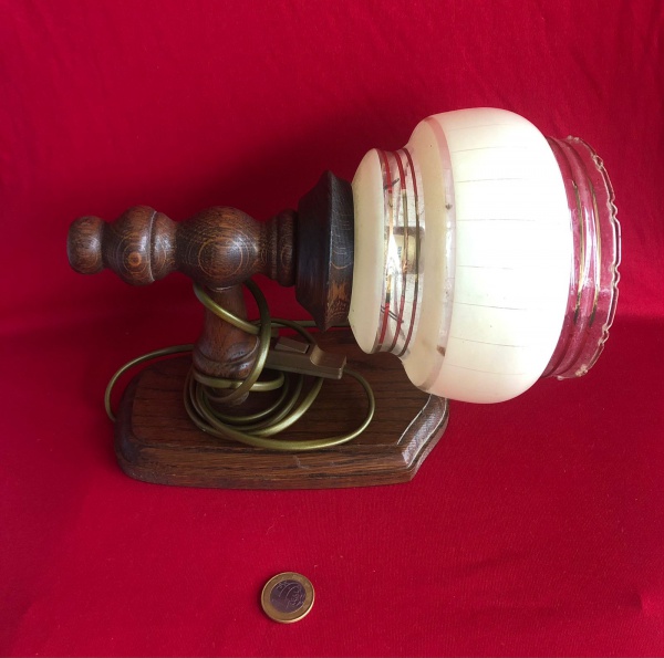 • Arandela de parede vintage com cúpula feita em vidro opalino e base em madeira torneada  comum entre as décadas de 1970 e 1980 .