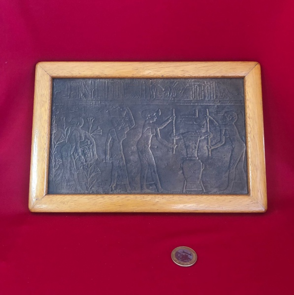 • Reprodução artística decorativa inspirada na arte da Mesopotâmia antiga feita de folha de cobre fina trabalhada em relevo  das décadas de 1960 e 1980 .