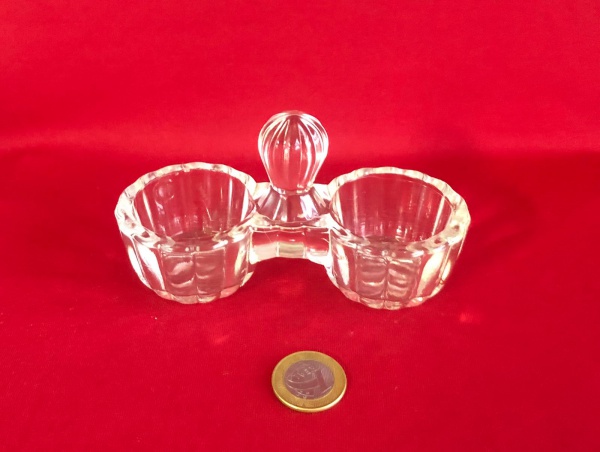 • Saleiro e pimenteiro duplo antigo feito em cristal no estilo Art Déco .