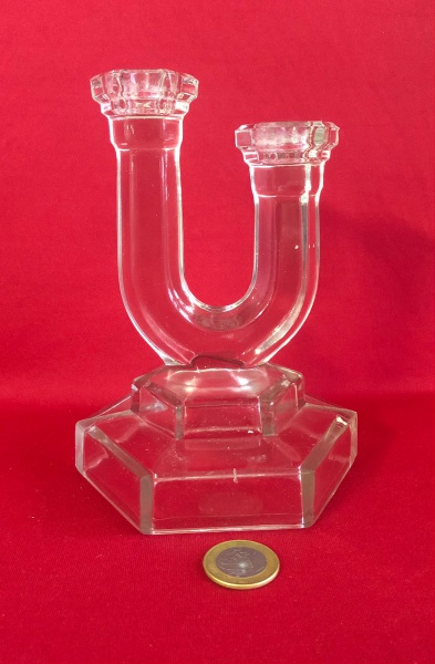 • Castiçal de vidro prensado de estilo Art Déco, datado das décadas de 1930 a 1950.