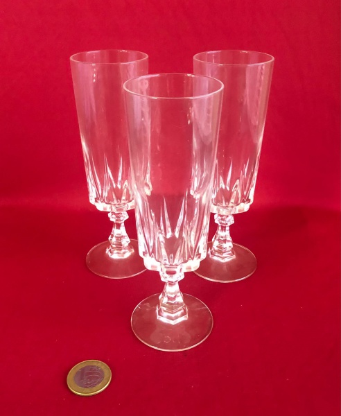 • Taças de cristal do modelo Louvre, produzidas pela renomada fabricante francesa Cristal d'Arques-Durand entre 1970 e 1980 .