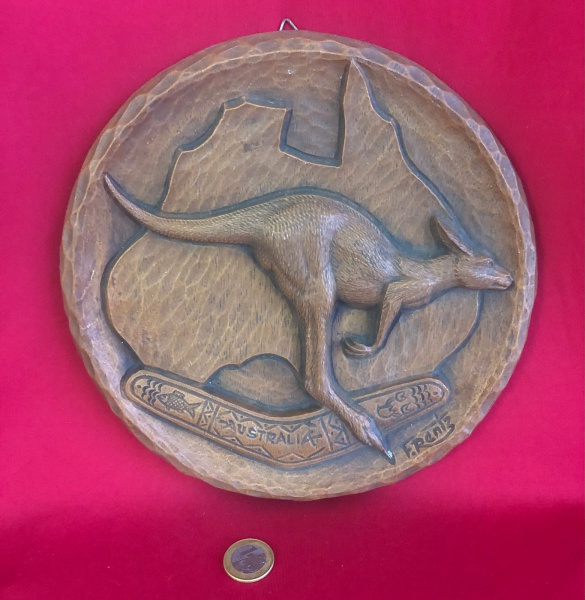 • Placa de parede decorativa de recordação da Austrália feita de resina composta  com design de cangurú produzido entre as décadas de 1970 e 1980 .